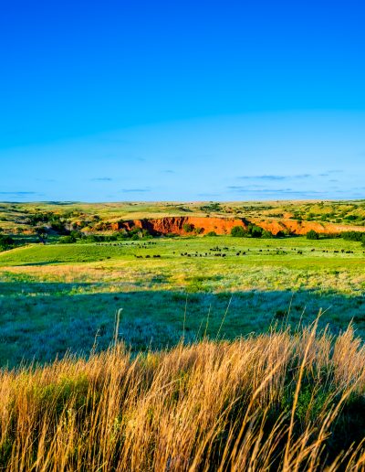 In 2012, following retirement from their full-time jobs, Katie Blunk and Michael Horntvedt, returned to Jackass Ridge Road northwest of Freedom, Oklahoma, to take over the Blunk family ranching operation. They subsequently picked up the reins from Katie’s mother, Rose Blunk, who literally cleared the red cedar path and burned a trail home for them to continue with her conservation efforts. Today, the commercial Angus cow-calf operation focuses on elite gate to plate genetics.